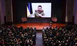 今天来一则短评,先来看一条信息:美东时间周三上午9点刚过,乌克兰总统泽连斯基通过视频向美国国会参众两院发表演讲。