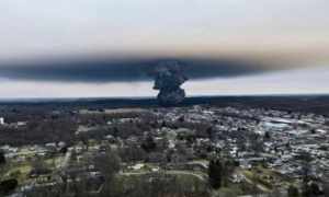 这场大灾难事发时间是当地时间2月3日晚,在美国俄亥俄州的小镇东巴勒斯坦城附近,一列运载有毒化学品的火车发生脱轨事故。